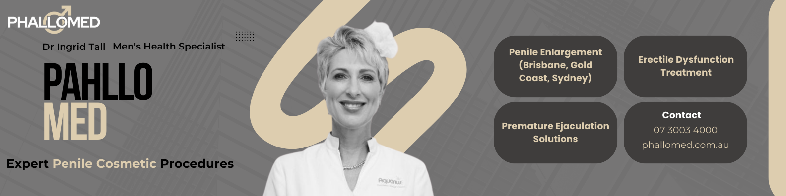At Phallomed, we offer private and professional health support for blokes in Brisbane, Gold Coast, and Sydney. Our clinic is led by Dr Ingrid Tall, who's a top medical doc with heaps of experience. We focus on safe, effective, and private ways to help with men's health and how they feel about themselves.